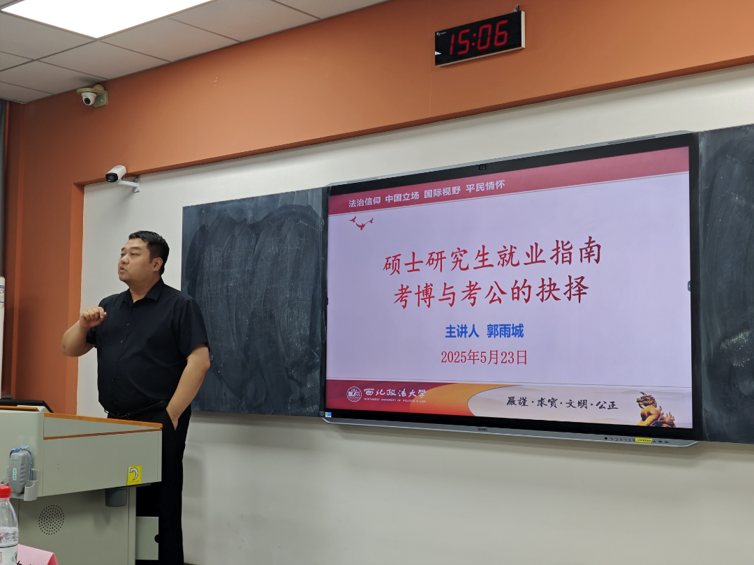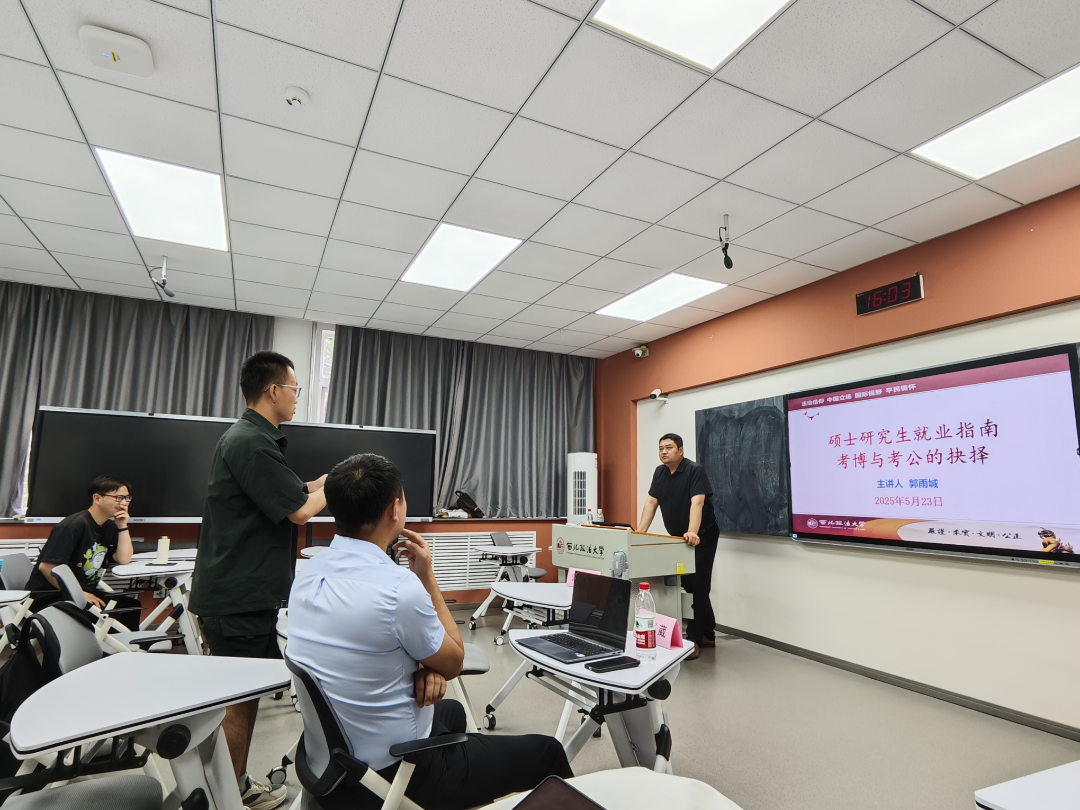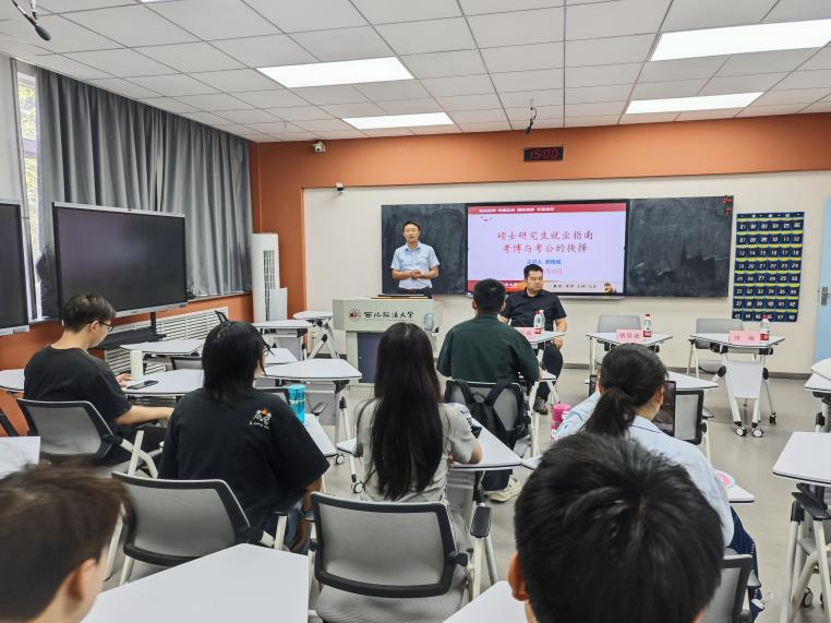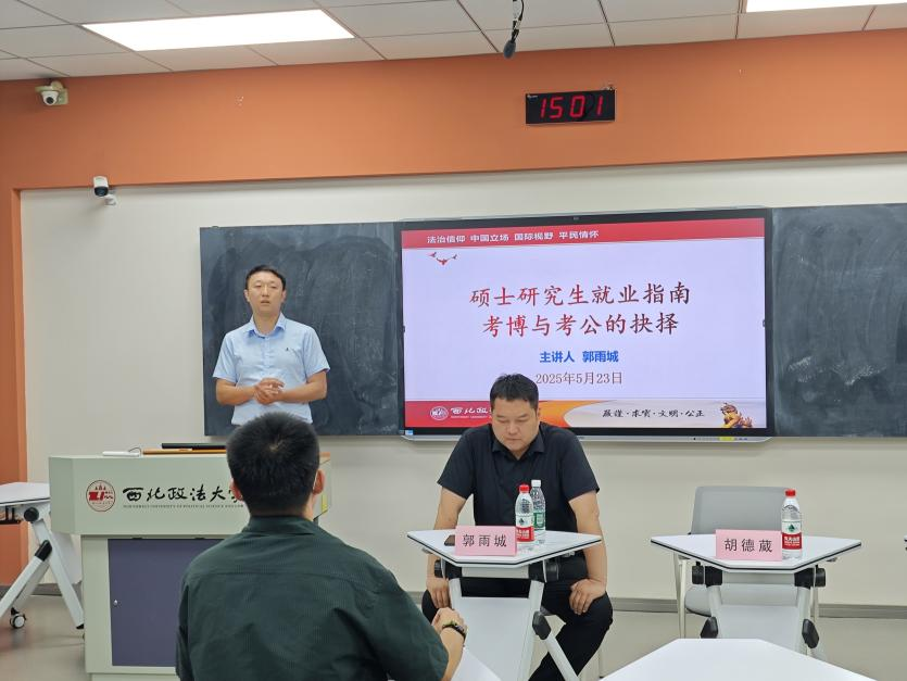在研究生阶段,同学们常常面临一个重要的抉择:是继续深造考博,还是进入公务员队伍考公?这是一个关乎未来职业发展和个人成长方向的关键决策。为解答研究生这一困惑,5月23日,公安学院(公共安全法学院)于雁塔校区三号教学楼3504教室举办“研途时光”第三期:硕士研究生就业指南考博与考公的抉择。本次活动邀请我院教师郭雨城主讲,由院长助理胡德葳副教授主持。