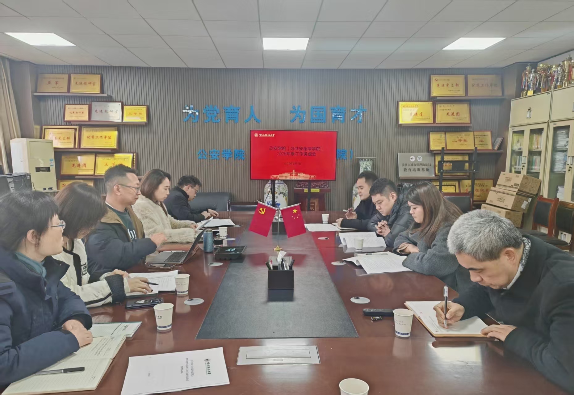 为科学谋划2026年工作思路,凝聚发展共识,2月1日下午,公安学院(公共安全法学院)在学院资料室召开2026年度工作务虚会。学院党委书记上官亚敏主持会议,学院领导班子成员、院长助理参加会议。