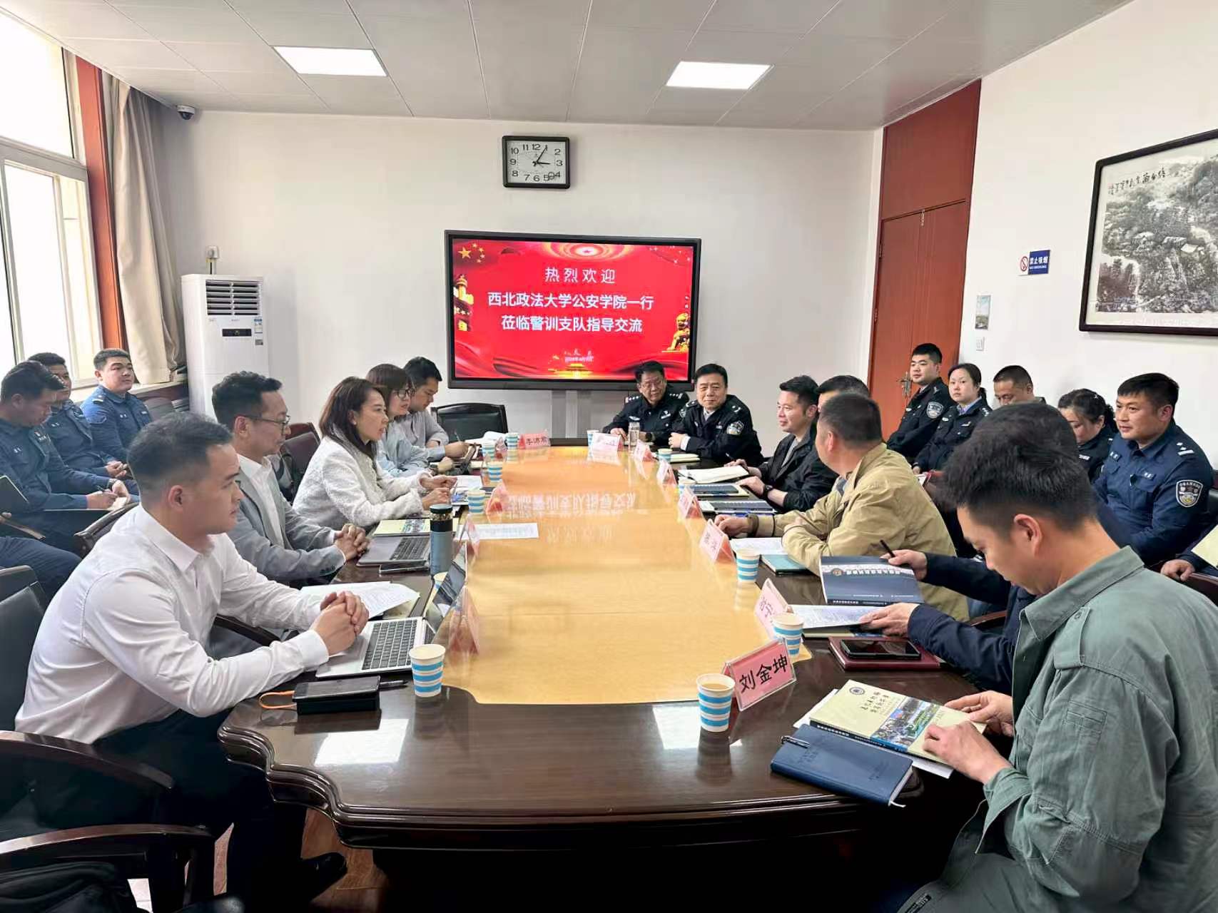 为深化校局合作,推动学术研究与警务实战训练深度融合,实现资源共享、优势互补,4月10日,公安学院(公共安全法学院)党委书记上官亚敏、院长刘仁琦率队赴西安市公安局警察训练支队开展调研交流。警察训练支队党委书记、支队长谭冲及相关部门负责人参加活动。