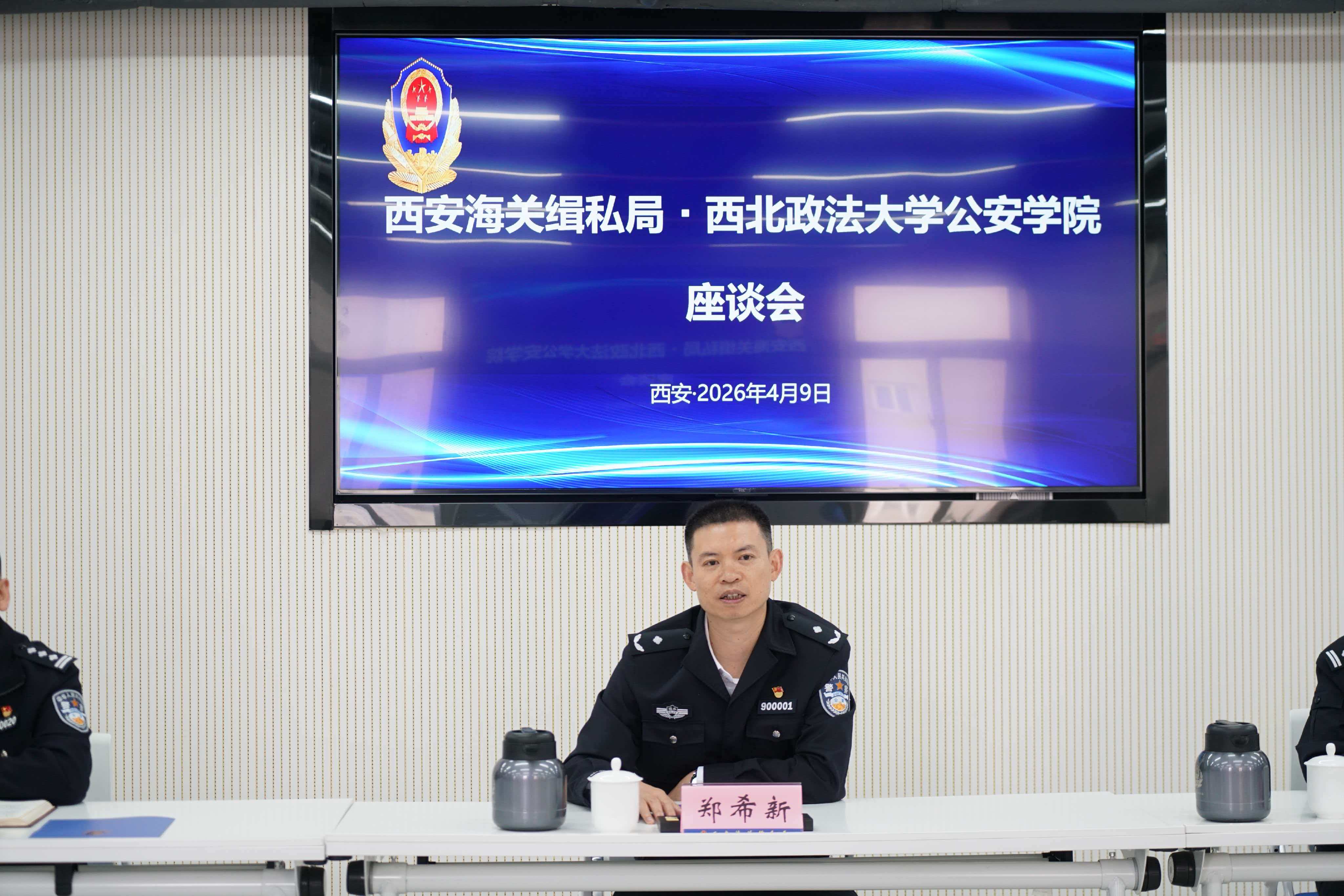 座谈会上,郑希新对学院一行的到访表示欢迎,并全面介绍了西安海关缉私局的发展历程、职能定位、执法实践等情况。他表示,近年来西北政法大学公安学院与西安海关缉私局在协同实践育人方面合作密切,形成了特色鲜明的育人模式。希望未来双方进一步拓展合作领域、深化合作内涵,推动合作取得更多务实成果。学院党委书记上官亚敏对西安海关缉私局长期以来对学院实习实践工作的大力支持表示感谢,并就深化协同育人、推动党建与业务深度融合等方面提出合作建议。院长刘仁琦介绍了学院的科研优势与代表性成果,并就共建科研创新平台、加强学术交流合作等内容进行了深入阐述。